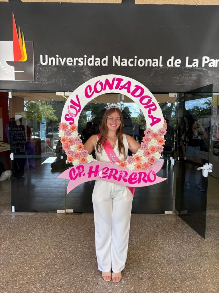 Luciana Mariel Herrero, oriunda de Colonia Barón y con 23 años, se graduó el mes pasado como contadora en la Universidad Nacional de La Pampa (UNLPam).