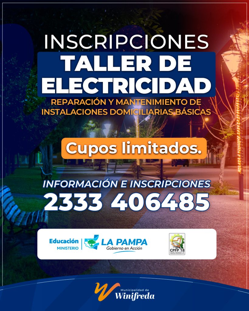 La Municipalidad de Winifreda anunció que ya se encuentra abierta la inscripción al taller de Reparación y Mantenimiento de Instalaciones Domiciliarias Básicas, una propuesta formativa con orientación en electricidad.
