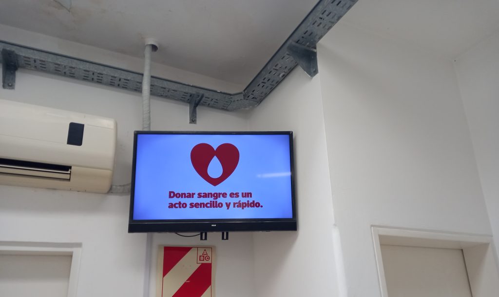 Según se pudo observar, la pantalla emite contenidos de información y concientización sobre distintas temáticas sanitarias.